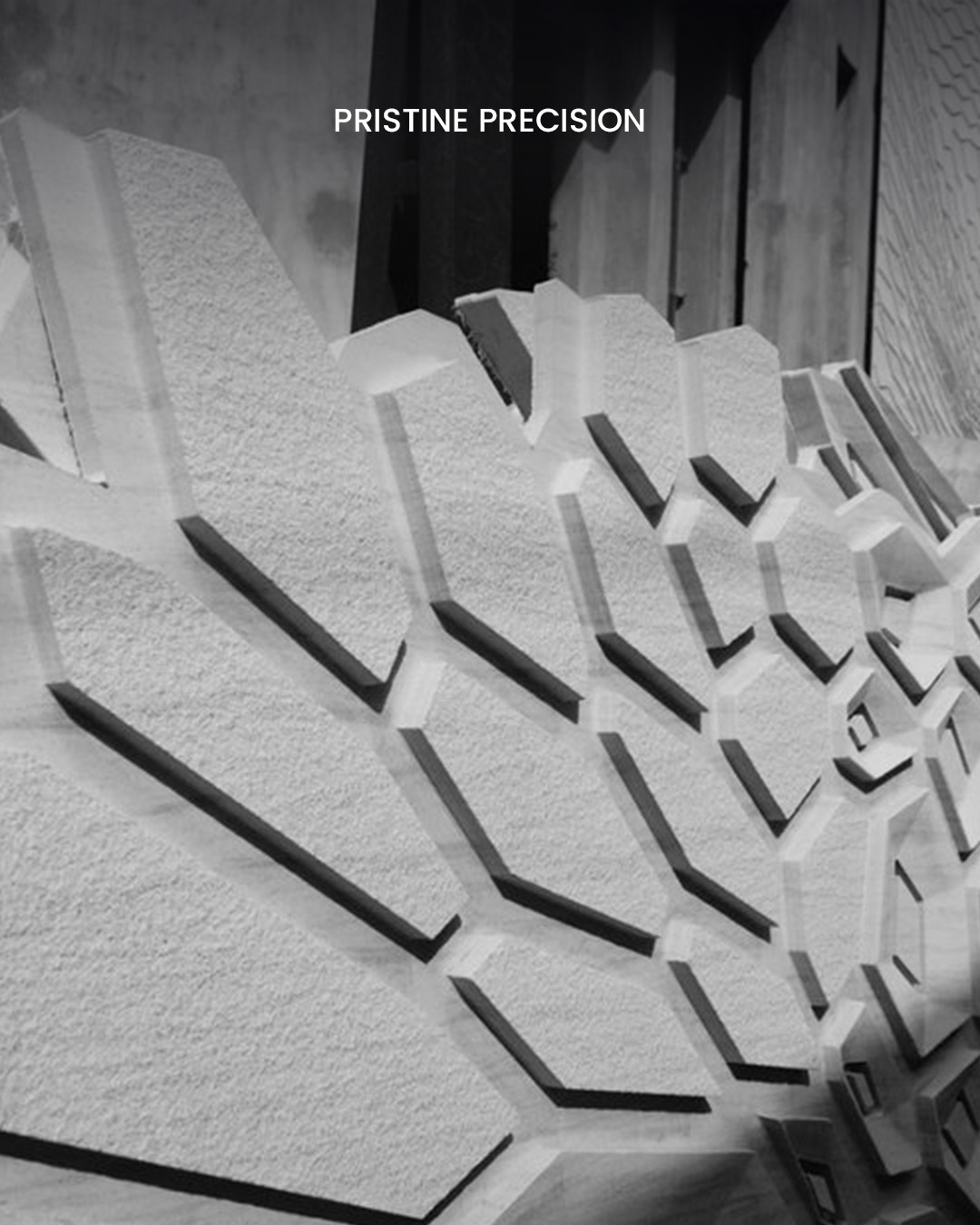 Each stone module was precision-cut and hand-finished, blending digital design technology with traditional craftsmanship. The process of making the stone facade required both accuracy and artistry, ensuring that every joint aligned seamlessly while preserving the tactile quality of natural stone.